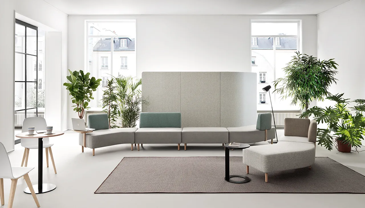 Fonction : accueil, espace collaboratif, espace repos / co-working / collectivité. Cruise est une solution modulaire pour espaces de repos, de travail ou de réunion, avec options de panneaux phonoabsorbants, piétement fixe ou mobile et revêtement tissu au choix.