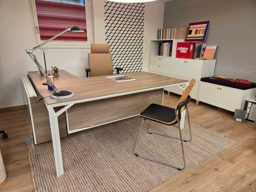 Dim. totales L 191 X P214 X H73 cm, décor plateau et caisson bois orme.