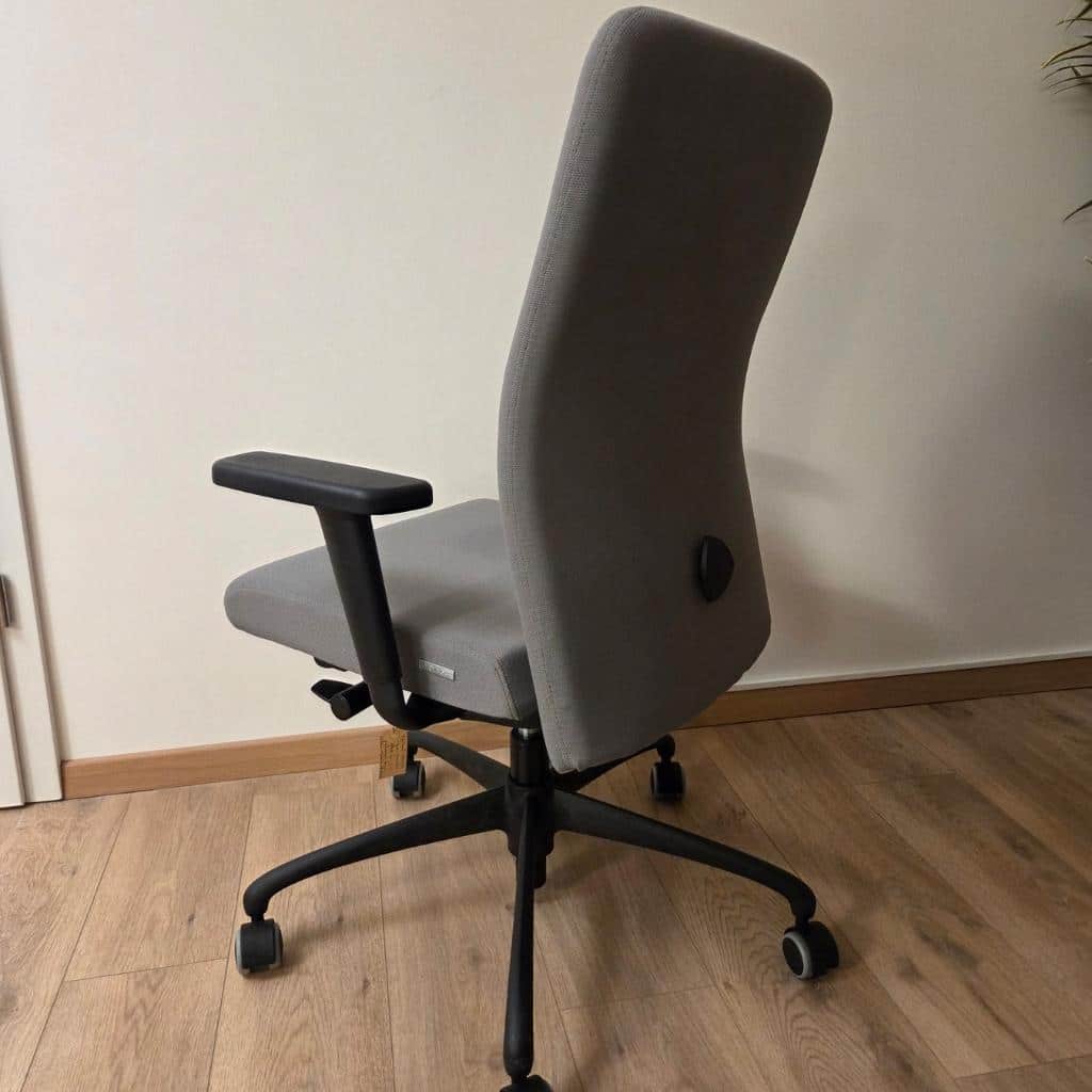 Système synchrone avec 5 positions de blocage, dossier en résille réglable en hauteur, translation d’assise avec tissu respirant, piétement aluminium poli, roulettes pour sol dur, accoudoirs en aluminium poli réglables en hauteur avec manchettes en PU.