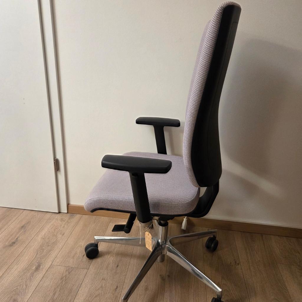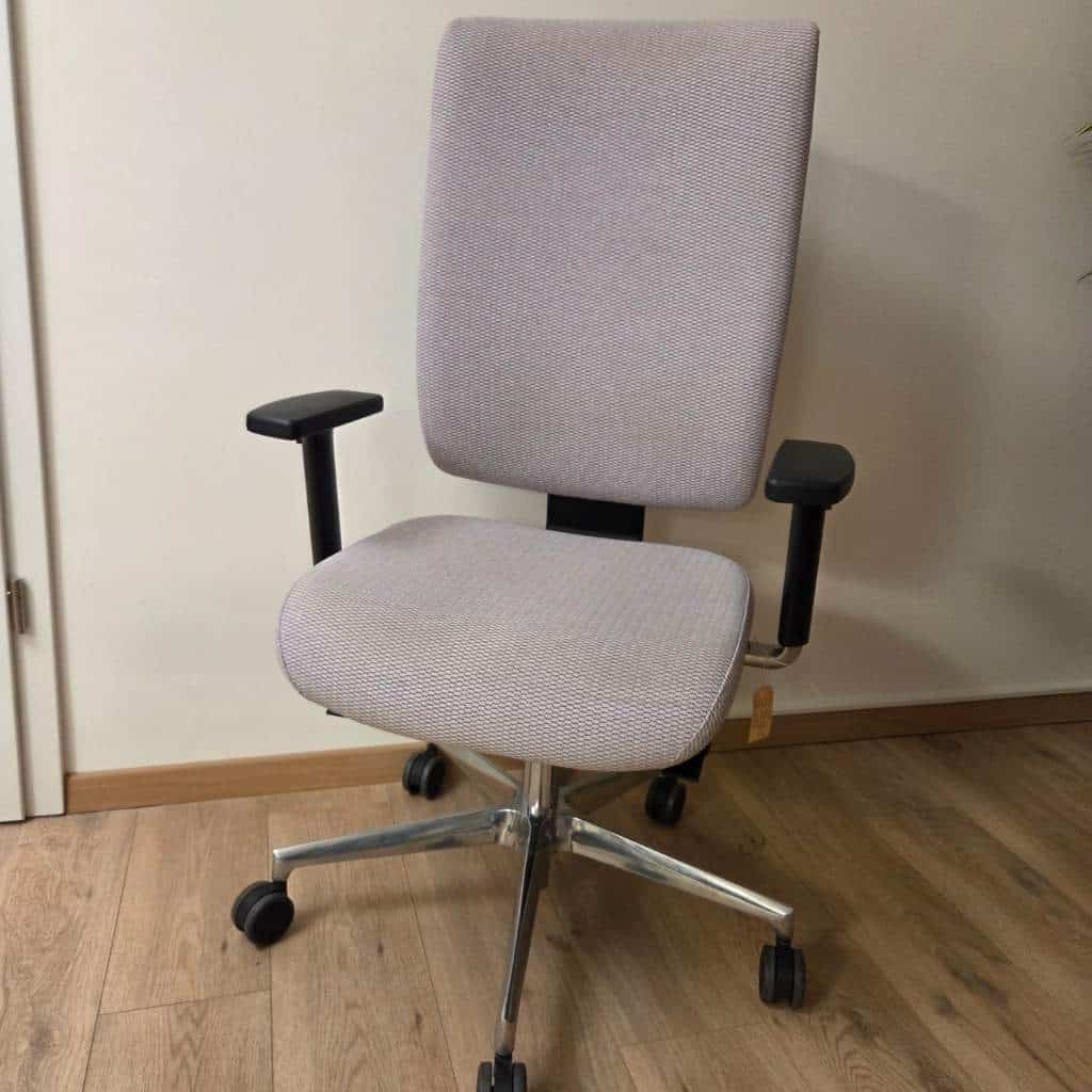 Système synchrone avec 5 positions de blocage, dossier réglable ne hauteur, translation d’assise, piétement aluminium poli, roulettes pour sol dur, accoudoirs en aluminium poli réglables en hauteur avec manchettes en PU.